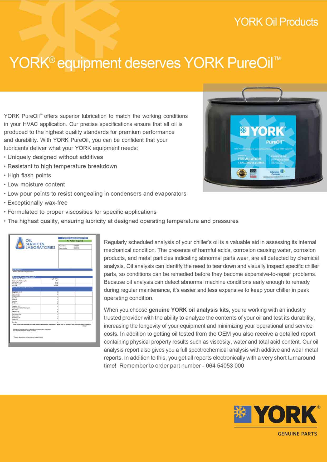 York H oil is a synthetic, ISO-100 lubricant based on a POE-Polyolester oil. It's designed for use in demanding refrigeration systems and is compatible with both HCFC and HFC refrigerants. It's engineered to meet the requirements of refrigerant gases, including HFCs, in industrial and commercial refrigeration, air conditioning and chiller applications.
